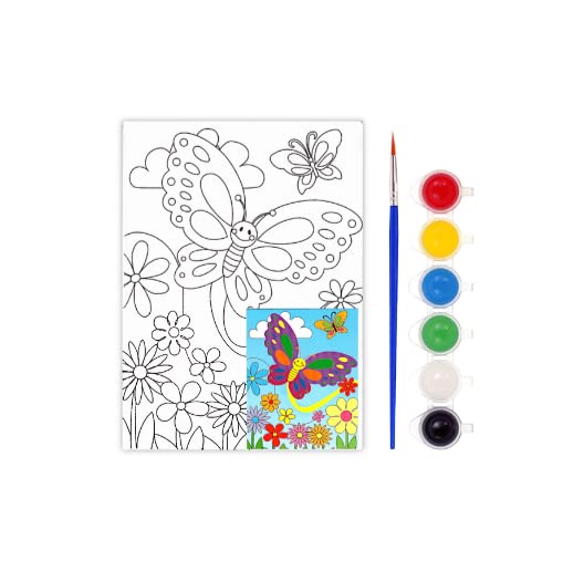 ART & CRAFT Painting Craft Kit for Kids- 1 Mini Pre- Drawn Canvas Panel and 6 Poster Colors Set with a Painting Brush for Kids Hobby Learning Painting Drawing Art and Craft DIY Sets Gift Sets