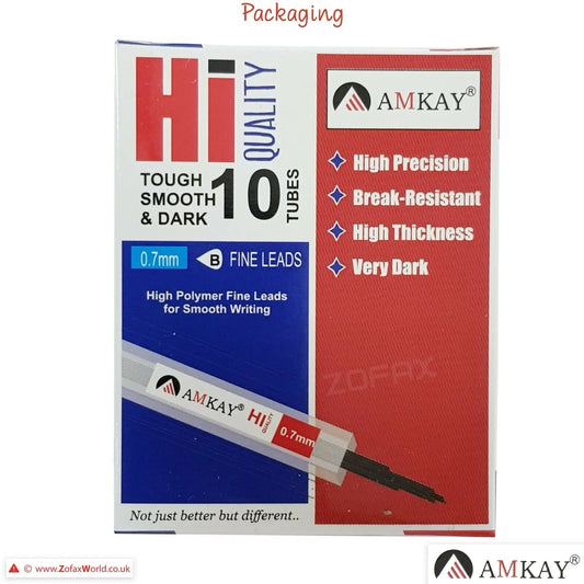 AMKAY Super Hi-Polymer Lead Refill 0.5/0.7Mm, Fine/Medium, Hb, Pack of 10 Packets