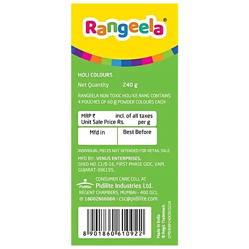 Pidilite Rangeela Holi Ke Rang Colours/Gulal - Non Toxic, Skin Friendly, Assorted Colours, 60 g (Pack of 4)