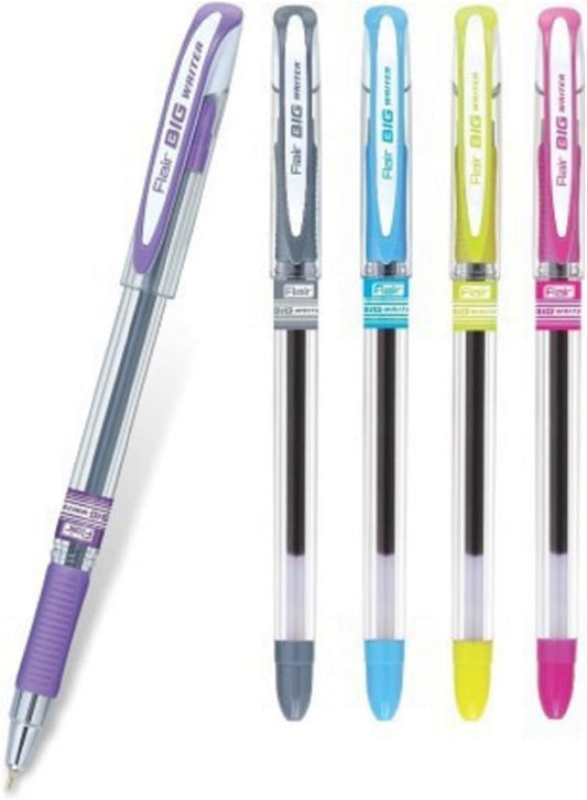FLAIR Big Writer 0.7mm Ball Pen Box Pack | Double Writing Pen With Comfortable Rubber Grip | Swiss Tip Technology For Smooth Writing Experience | Blue Ink Pack of 10 pcs