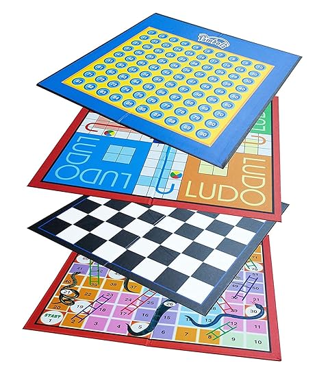 EKTA 4 in 1 Family Strategy Board Games | Tambola, Chess, Ludo and Snakes & Ladders Educational Family Games | Fun & Strategy Games Multicolor for 2 years or above