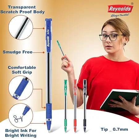 Reynolds BRITE Ball Point Pen Set With Comfortable Grip | Pens For Writing | School and Office Stationery | Pens For Students | 0.7mm Tip Size
