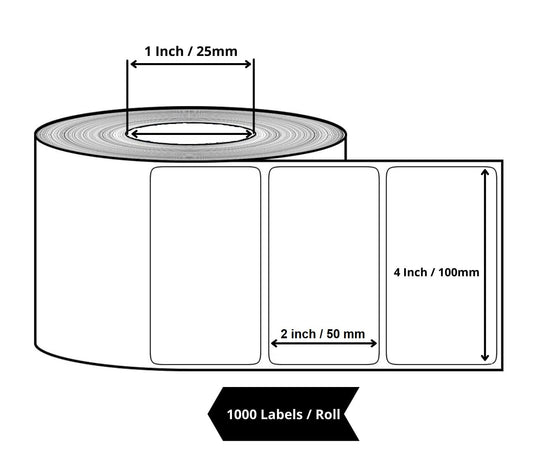 KIYA 100x50 Barcode Label Sticker - 100mm x 50mm - 1 Ups - 1000 Labels Per Roll - White Self Adhesive Sticker for Printing Barcoding (1 Roll Per Pack (1000 Labels))