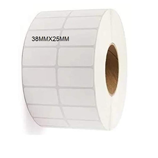 KIYA 38x25x2 Barcode Label Sticker - 38mm x 25mm - 1 Ups - 2000 Labels Per Roll - White Self Adhesive Sticker for Printing Barcoding (1 Roll Per Pack (2000 Labels))