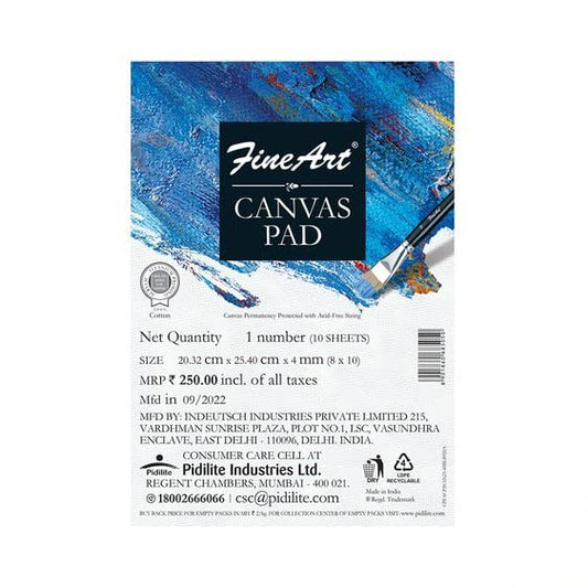Pidilite Fevicryl Fine Art Canvas Pad for Painting, 10 Sheets per Canvas Pad, Ideal for Acrylic & Oil Painting, White (8 X 10)