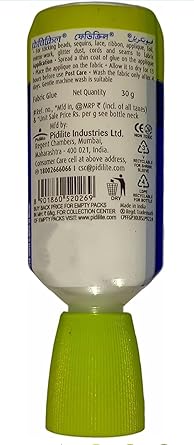 PIDILITE Fevicryl Premium Fabric Glue for Cloths - 30 g Fast Drying - Sticking Beads - Sequins - Lace - Ribben - Foil - Mirror-Work - Strong