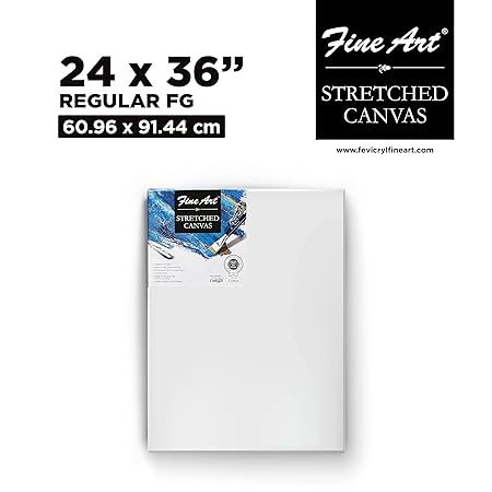 Pidilite Fevicryl Fine Art Stretched Canvas Back Fold for Painting, 100% Cotton Fine Grain Stretched Canvas, Ideal for Acrylic & Oil Painting, (24 X 36 Inch)