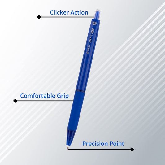Pilot BP-1 RT 0.7mm Fine Tip Ball Pen with Soft Rubber Grip | Blue Ink