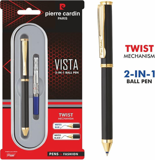 Pierre Cardin Vista 2 in 1 Ball Pen | Metal Body With Twist Mechanism | Smudge Free Writing, Refillable Pen | Ideal For Corporate Gifting, Festive Gifting | Blue & Black Ink, Pack Of 1
