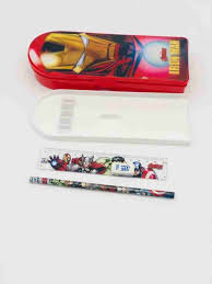 SKI 3D Crysta Iron Man Printed Pencil Box with Accessories for Kids Double Level Plastic Pen /Pencil/Stationary Holder with Pencil Eraser Scale &sharpner Iron Man Art Plastic Pencil Box