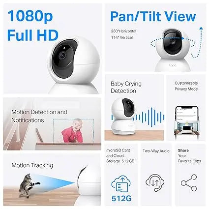 Tapo TP-Link C200 360° 2MP 1080p Full HD Pan/Tilt Home Security Wi-Fi Smart Camera| Alexa Enabled| 2-Way Audio| Night Vision| Motion Detection| Sound and Light Alarm| Indoor CCTV White