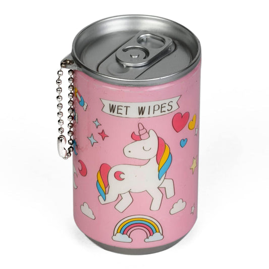 ART & CRAFT Cute Funky Unicorn Tin Shape Mini Wet Wipes Tissue, Extremely Portable Tin Cream/Pink Color (PACK OF 1)