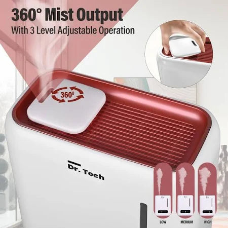 Dr. Tech J820 Ultrasonic Humidifier Cool Mist Air Purifier Dryness Cold & Cough Large Capacity Ideal Fit for Indoors Office Babyroom Nursery and Bedro