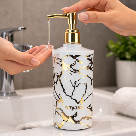 Nayasa Marble Soap Dispenser with Gold Pump | Refillable Handwash Bottle