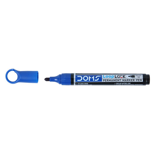 Doms Refilo Non-Toxic Hi-Tech Refillable Loop Lock Permanent Marker Pen (BLUE)