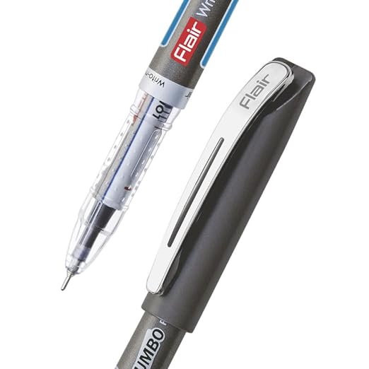 FLAIR Writometer Jumbo Ball Pen | Stainless Steel Tip | Our Longest Writing Pens, Writes Upto 12500 Meters | Ensures Smoothness & Durability | Blue Ink, Pack of 1
