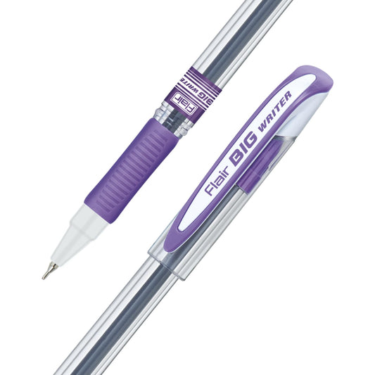 FLAIR Big Writer 0.7mm Ball Pen Box Pack | Double Writing Pen With Comfortable Rubber Grip | Swiss Tip Technology For Smooth Writing Experience | Blue Ink, Pack of 1 PCS