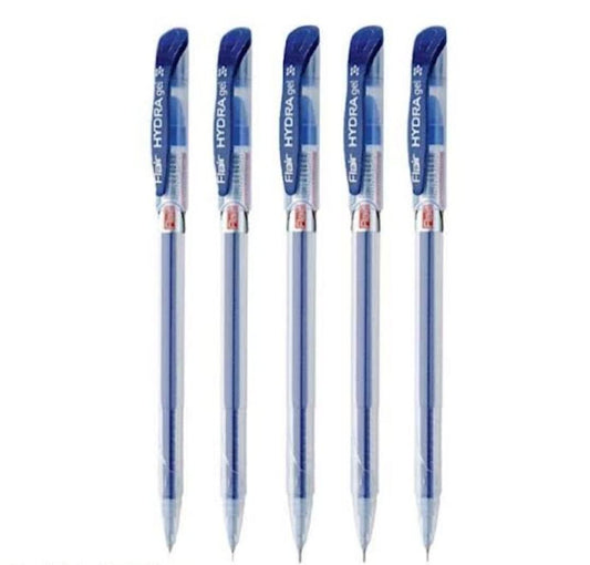 FLAIR Hydra Gel Pen Pouch Pack | Soft Rubber Grip For Easy & Comfortable Holding | Low-Viscosity Quick Dry Ink Provides Smooth Writing | Blue Ink, Pack of 5 Pens