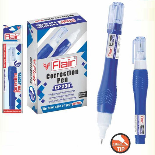 Flair Creative Series CP250, 100 Correction Pen Pouch Pack | 0.8 mm Needle Metal Tip | Fast Drying & Ozone Safe | Designed to Enhance Grip | Pack of 5