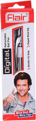 FLAIR Digital Ball Pen Box Pack | Retractable Mechanism With Grip For Easy Holding | Swiss Tip Technology For Smooth Writing Experience | Blue Ink