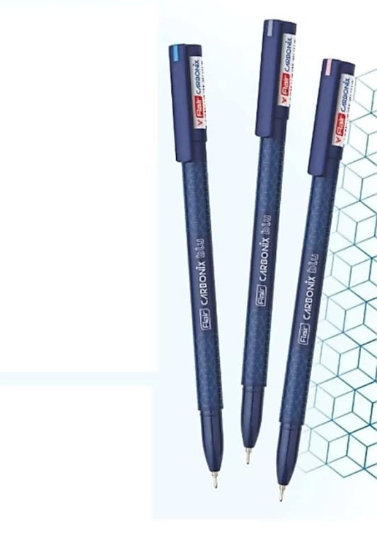 FLAIR Carbonix 0.7mm Ball Pen Box Pack | Liquid Ink Light Weight Pen | Comfortable Grip With Extra Smooth Writing Experience | Attractive Black Body | Blue Ink, Pack of 10 Pens