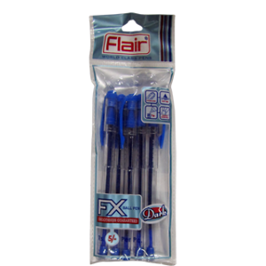 FLAIR Fx Ball Pen Pouch Pack | Soft Rubber Grip For Easy & Comfortable Holding | Low-Viscosity Quick Dry Ink Provides Smooth Writing | Pack of 5 Pens