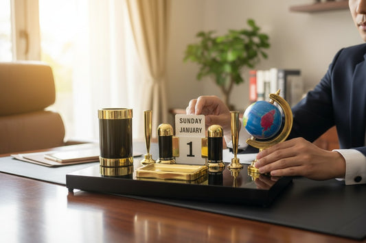 Premium Desk Organizer Set with Globe, Calendar & Pen Holders | Elegant Office Table Set