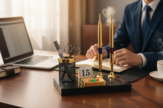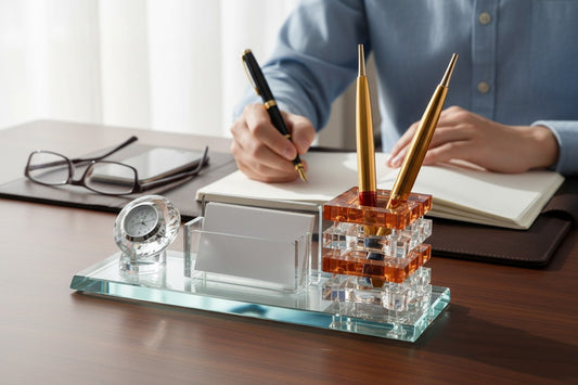 KEBICA Premium Crystal Desk Organizer Set with Clock, Pen Holder & Business Card Stand – Luxury Executive Office Table Accessory