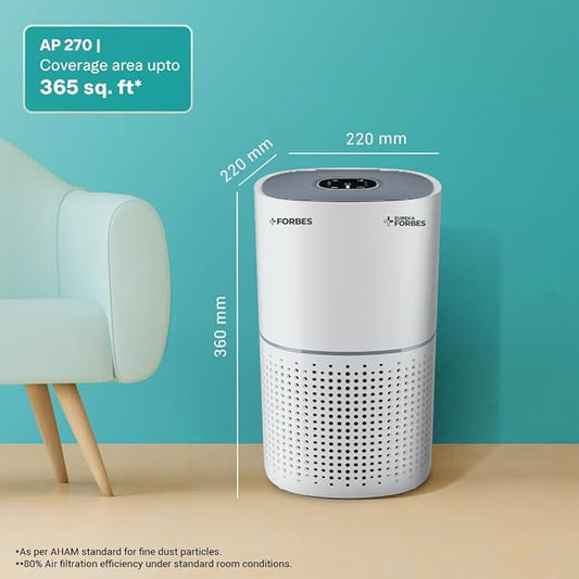 Eureka Forbes 270 Air Purifier for Home |True HEPA H13 Filter & Real-time AQI Indicator |1.5-2 Yrs Filter Life* | Removes 99.97% PM2.5, Dust, Allergens, Bacteria & Pollen| Covers up to 365 Sq.Ft