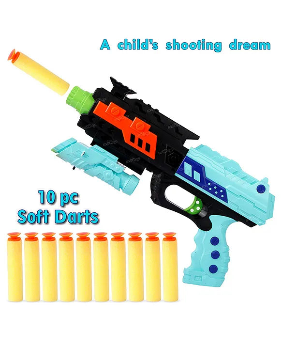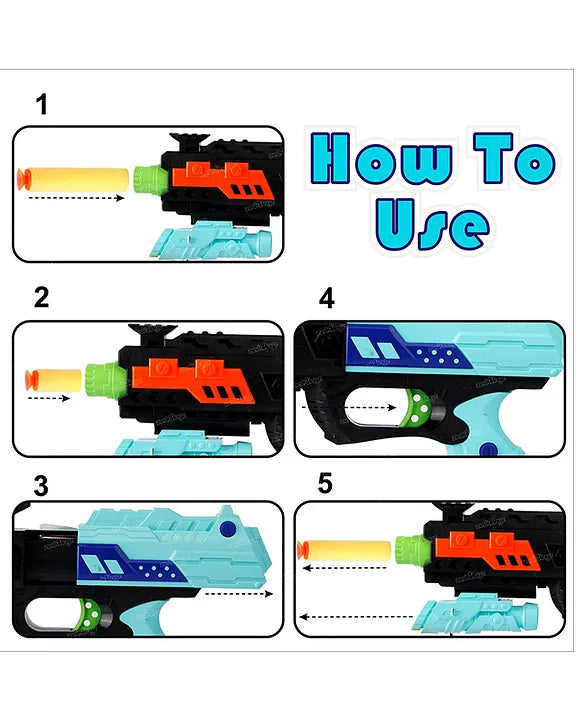 Have a great shooting dart game with this Manual Soft Bullet Gun. Kids will love to fire soft foam bullets and suction darts and hit the bottle target. Or you can make a target board yourself and sharpen your shooting skills. This Gun is easy to operate - load the soft bullets or suction darts from the front muzzle, pull the lever at the back, trigger and fire. Ideal for kids ages 3+ years.