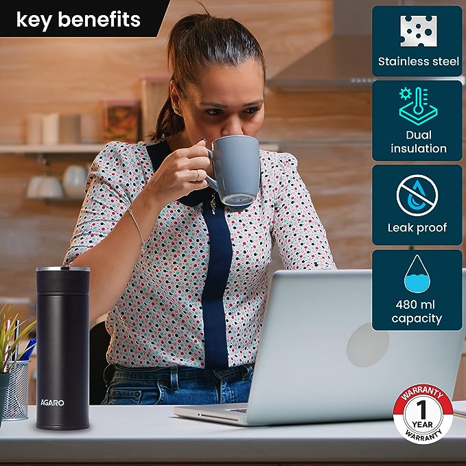- 304 grade inner and outer stainless steel crafted 480 ml vacuum flask