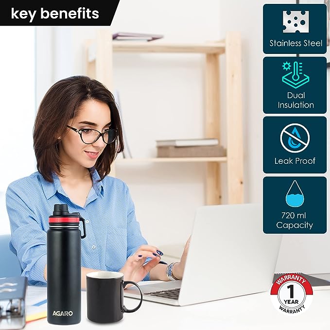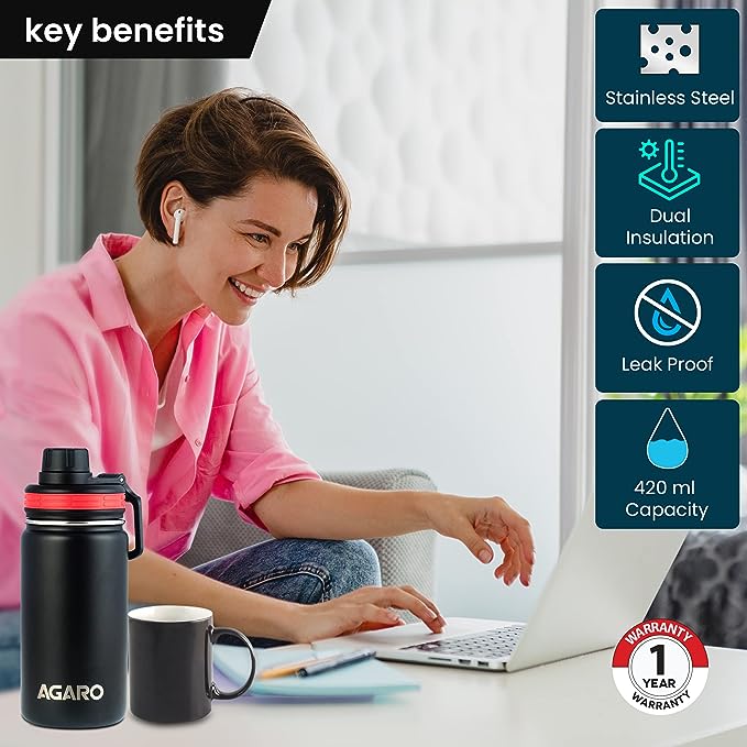 - Double walled vacuum and copper insulation retains the temperature upto 8 hours for hot & cold beverages
