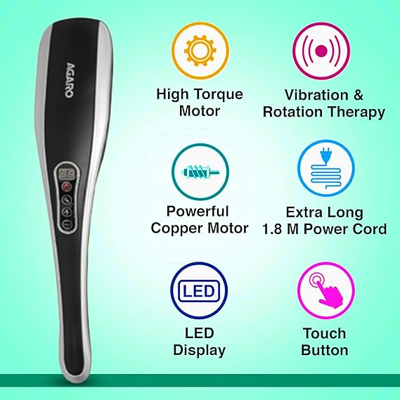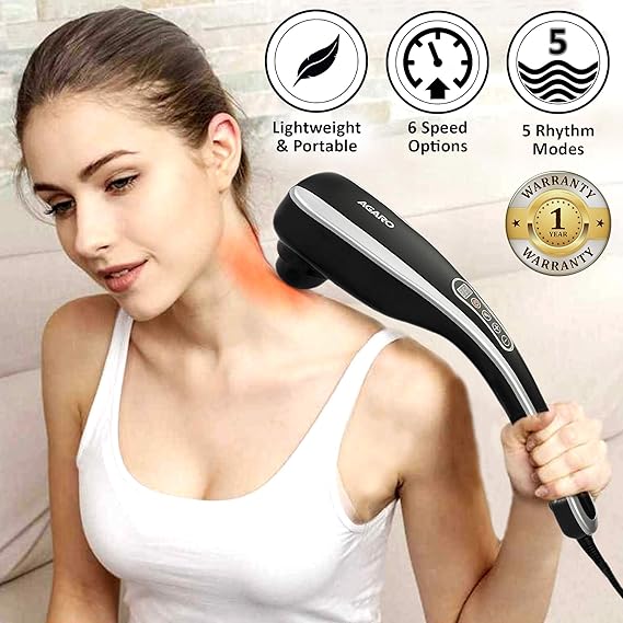 AGARO MARVEL Electric Handheld Full Body Hammer Massager with 5 Massage Heads, 5 Mode & 6 Speed Settings for Pain Relief & Relaxation, Back, Leg & Foot