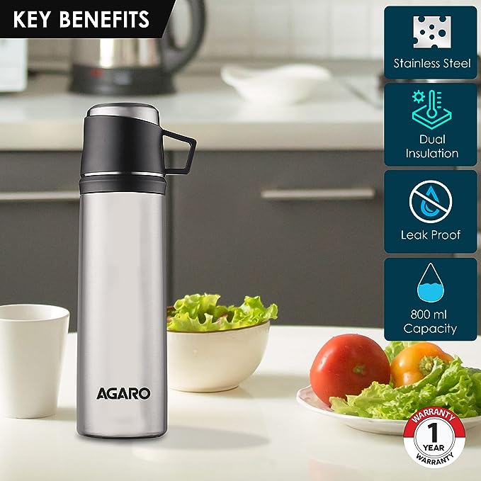 AGARO Supreme Vacuum Flask 800ml Steel Finish