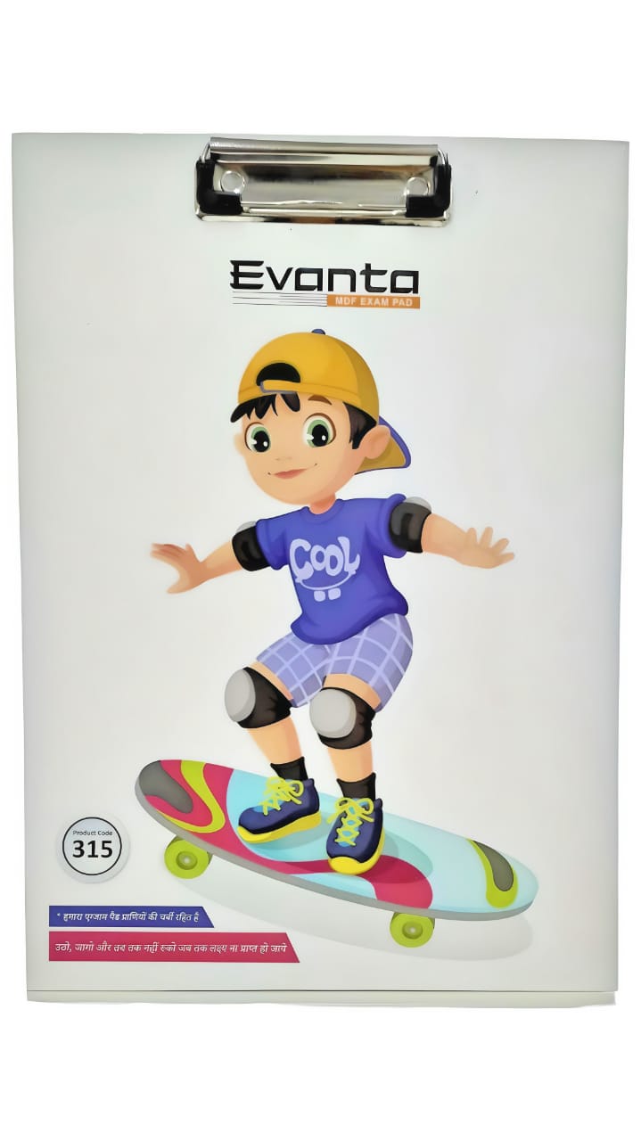 Presents unique design exam clip pad board .our Clipboard provides a stylish, functional way to write without the use of a desk .Get this printed Exam Board and your kid will love giving exams. This strong board is equipped with a clip-on top, which does not require to be punched. Your kids will be able to give their exam effectively and conveniently with this writing pad due to its smooth surface, Can be used for any purpose, exam or drawing or writing or office use