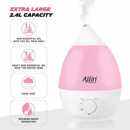 Allin Exporters J66 Ultrasonic Humidifier Cool Mist Air Purifier for Dryness, Cold & Cough Large Capacity for Room, Baby, Plants, Bedroom (2.4 L) (1 Year Warranty)