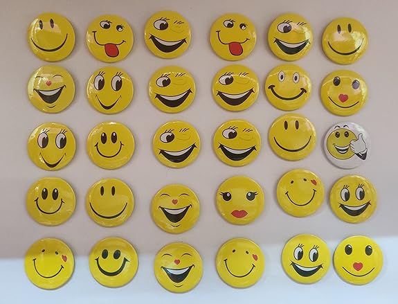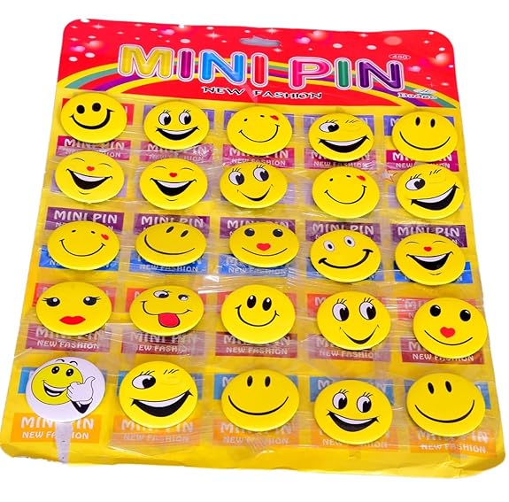 AMKAY SMILEY BADGE WITH PIN, SMILEY EMOJI COLORFUL EXPRESSIONS BUTTON WITH PINS