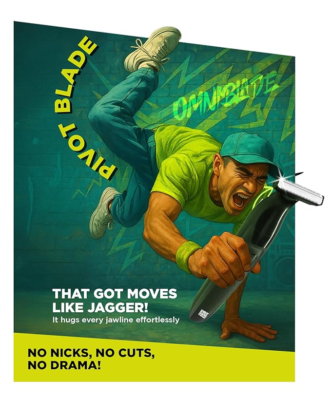 - TRIM, STYLE & SHAVE: with a revolutionary trimmer that features one dual blade (back and front) for trimming, creating precise edges and shaving