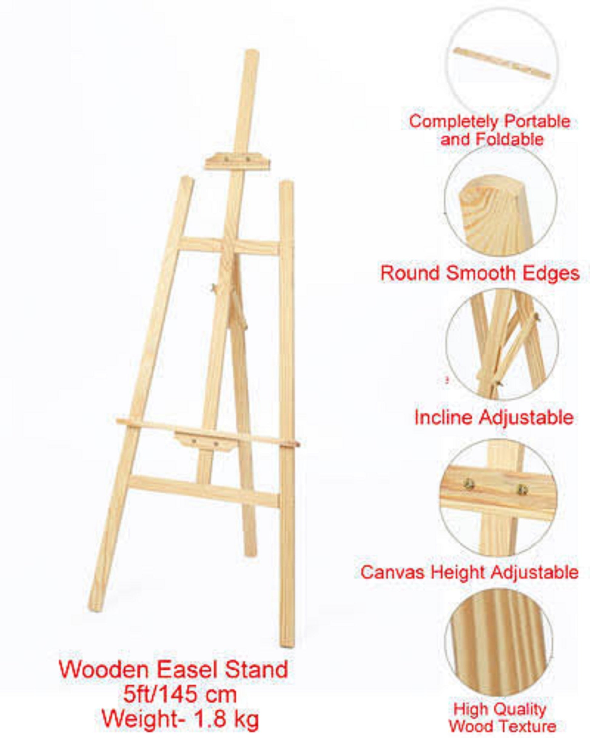 DIGISMART® Premium Artist Wooden Easel Stand 5 FEET with Angle and Height Adjustment for Canvas Painting Display 5 ft [154 cm]