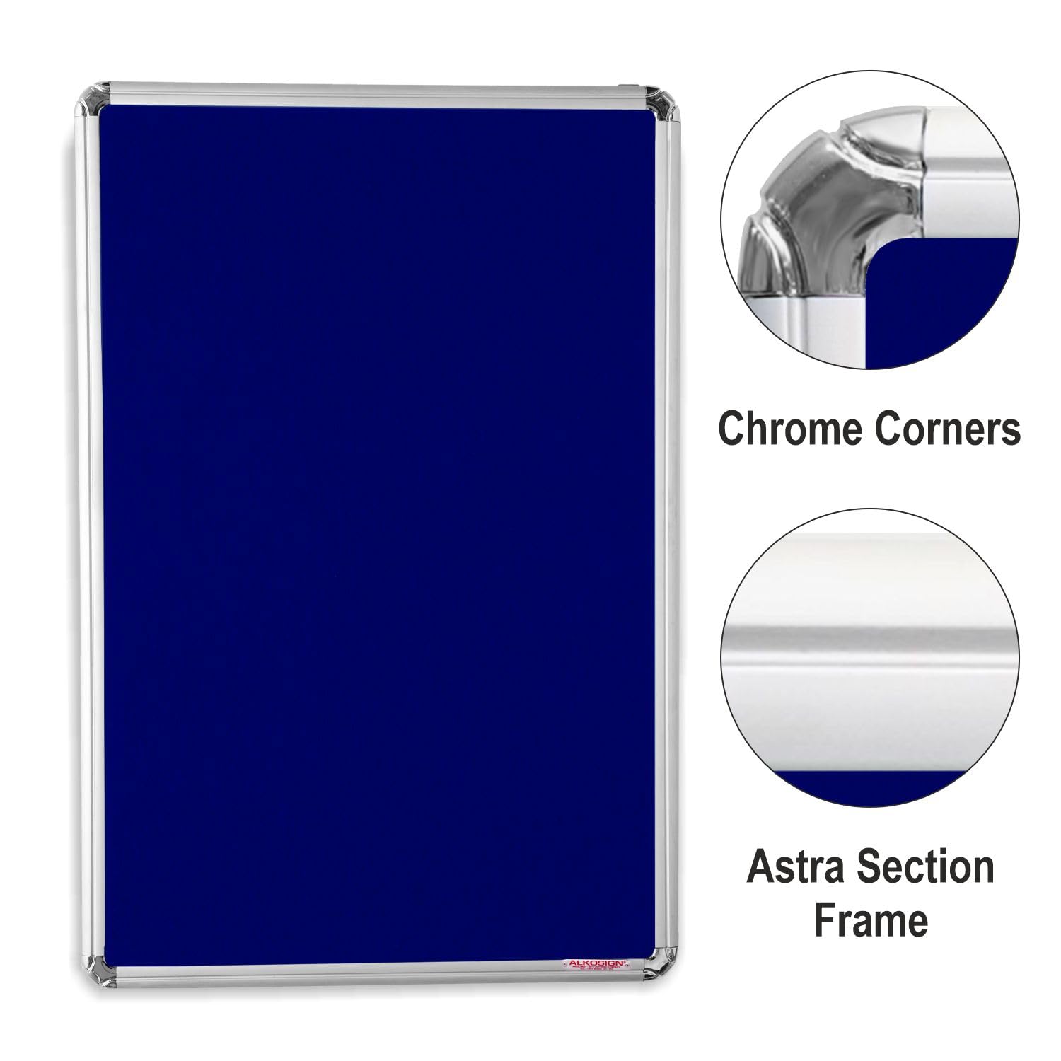 - MATERIAL-To ensure the documents stay securely pinned, a Premium Flannel Fabric is used The Notice Board is Framed in double sided curved Astra Aluminum Section Frame has Matt Silver Anodized.