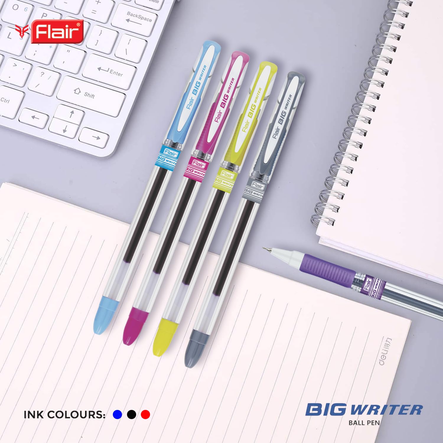 FLAIR Big Writer 0.7mm Ball Pen Box Pack | Double Writing Pen With Comfortable Rubber Grip | Swiss Tip Technology For Smooth Writing Experience | Blue Ink, Pack of 1 PCS
