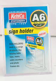 - Portrait oriented paper (A5 Size) slides into the opening located on the top of the holder. Easy to update as and when required.