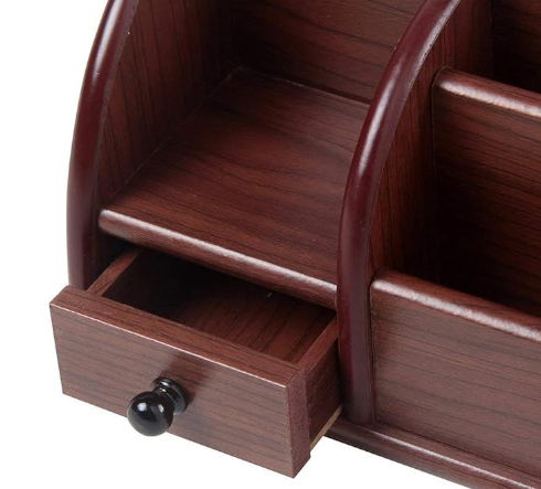 Kebica Polished Multi-Functional Wooden Desk Organizer, Pen Stand/Pencil Stand/Stationery Stand for Office and Students use with Drawer
