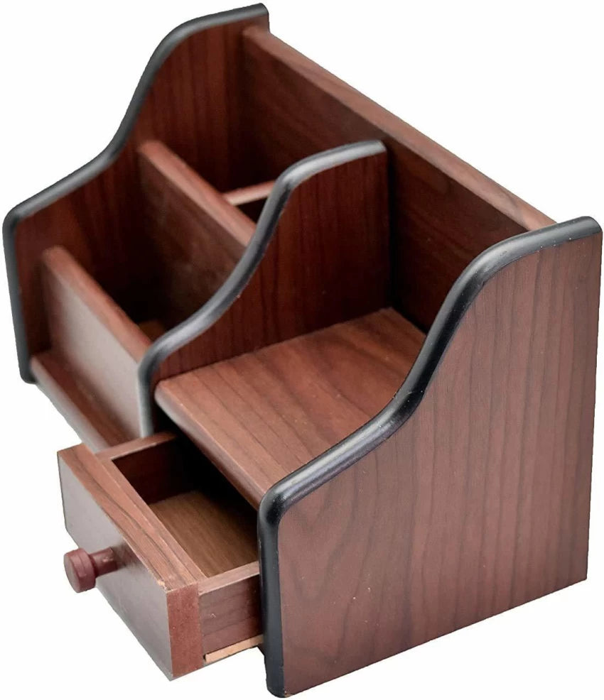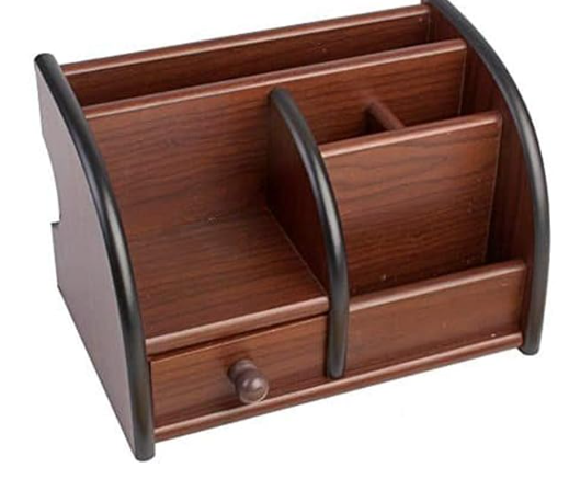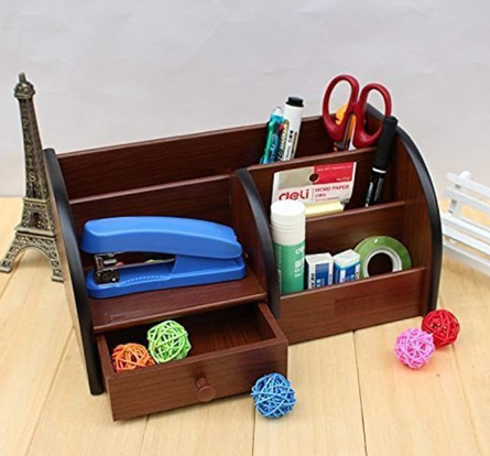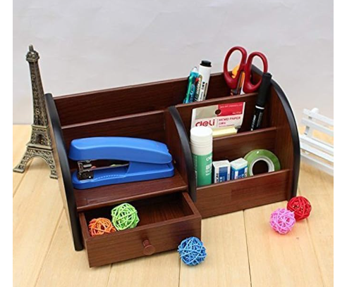- Keep the room and desk clutter-free with this multi-functional wooden desk organizer.