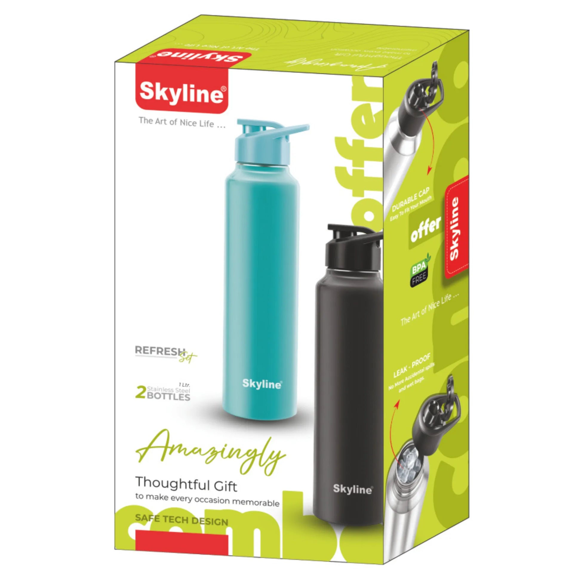 Stay hydrated with convenience and style using the Skyline 2-Pack Stainless Steel Water Bottles, designed for everyday use and active lifestyles. Each bottle comes with a 1-litre capacity, making it perfect for keeping you refreshed throughout the day—whether at home, office, gym, or on the go.